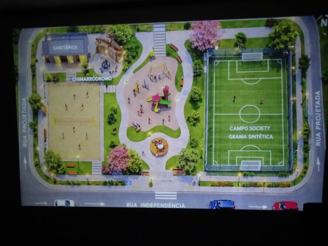 O anteprojeto arquitetônico prevê a implantação de caminhódromo ao redor da área, campo de areia, quadra de vôlei, quadra society, chimarródromo, playground infantil, além de outras estruturas que visam atender diferentes faixas etárias e promover qualidade de vida. Durante a explanação, foram apresentados o cenário atual da área, as intervenções previstas e os impactos positivos esperados para o município.