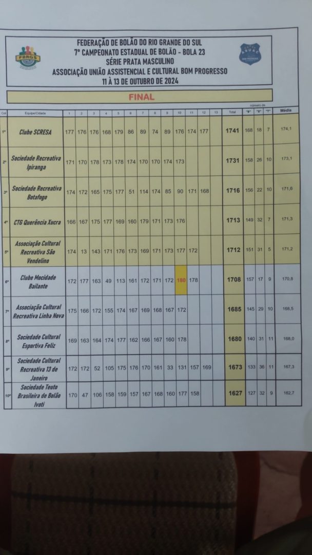 Grupo de Bolão Querência é 4º lugar no Estadual de Bolão Série Prata
