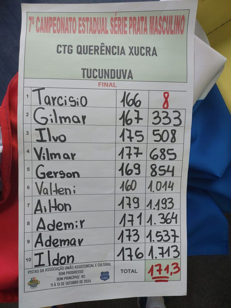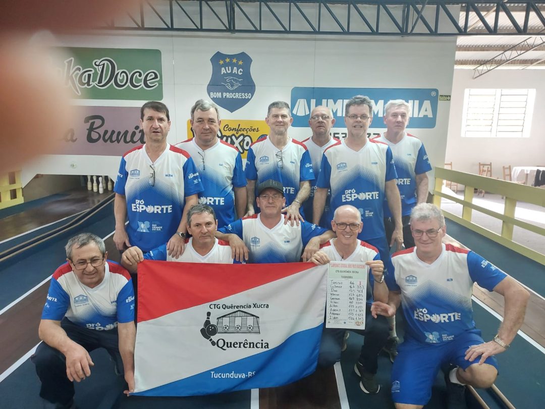 O Grupo de Bolão que representa o CTG Querência Xucra de Tucunduva,  teve um ótimo desempenho durante o 7º Campeonato Estadual da Série Prata, evento disputado de 11 a 13 de outubro no Clube Bom Progresso, na  cidade de Bom Princípio. O time de Tucunduva terminou o torneio em 4º lugar e por pouco não conseguiu o acesso a Série Ouro, chegando a final com 1713 pinos. O Grupo do CTG competiu com outras 18 equipes de todo o Estado. “Só temos a agradecer  o empenho de cada atleta e a união de todos. Por pouco não conseguimos um resultado melhor ainda”, comenta o atleta Gerson Vacaro.  O Grupo de Bolão Querência vive ótima fase, uma vez que recentemente teve aprovado um Projeto junto programa Pró Esporte do Governo do Estado, que possibilita que empresas destinem a projetos esportivos parte do ICMS devido. Com a aprovação do Projeto a coordenação do Grupo de Bolão conseguiu um importante aporte de financeiro no valor de R$ 60 mil, financiados através das empresas Super Castelo e Coopermil. “Graças a este recurso conseguimos custear as despesas nas competições”, explica Vacaro.