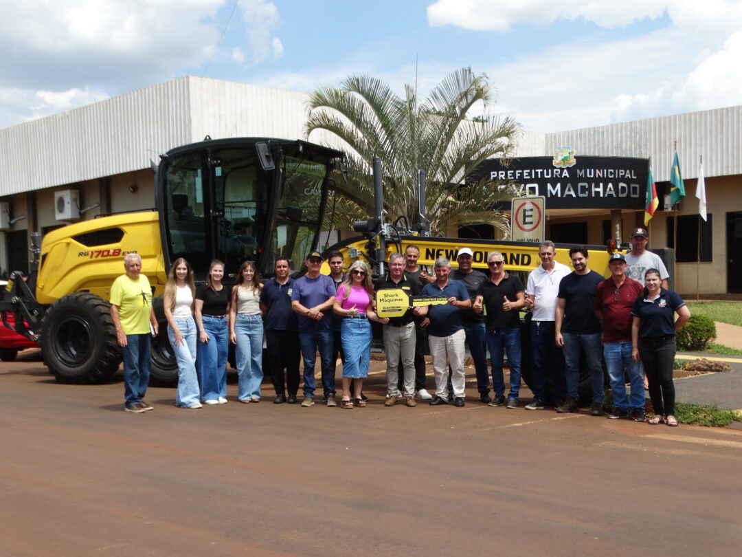 A Administração Municipal de Novo Machado realizou, nesta quarta-feira (04), a entrega oficial de uma motoniveladora da New Holland, adquirida com recursos próprios no valor de R$ 1.039.000,00. O equipamento passa a integrar a frota do município, fortalecendo os serviços de infraestrutura urbana e rural.